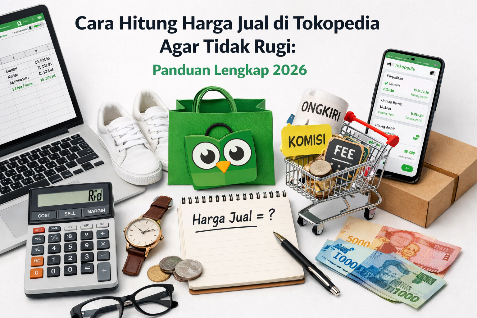 Menetapkan harga jual di Tokopedia bukan sekadar menambah persentase ke harga beli. Ada banyak faktor yang harus diperhitungkan: komisi Tokopedia 20%, biaya kemasan, ongkir, biaya operasional, dan margin target keuntungan.